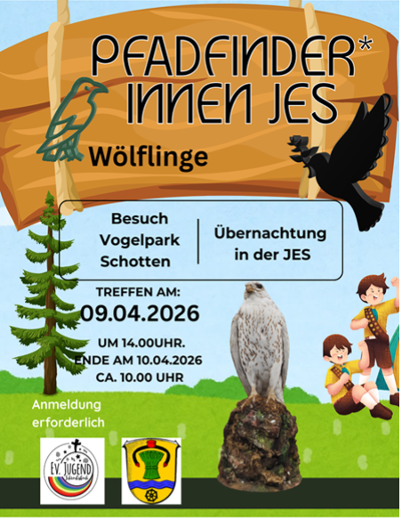 Die Pfadfindergruppe „Wölflinge“ der JES Schrecksbach plant ein besonderes Erlebnis in den Osterferien. Am 9. April 2026 steht ein gemeinsamer Ausflug in den Vogelpark Schotten auf dem Programm. Dort können die Kinder verschiedene Vogelarten aus nächster Nähe erleben und mehr über die Tierwelt erfahren.